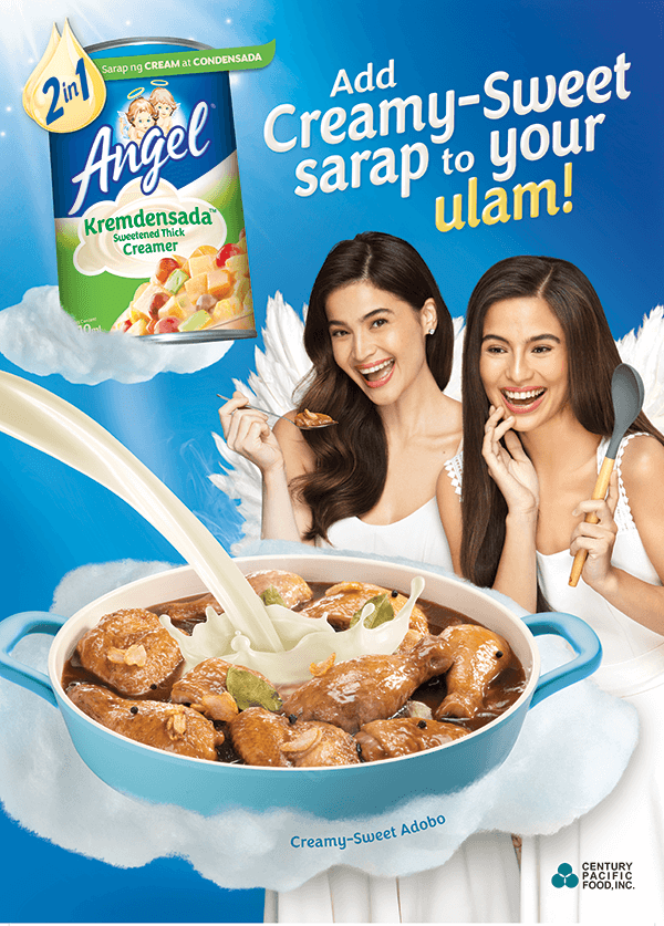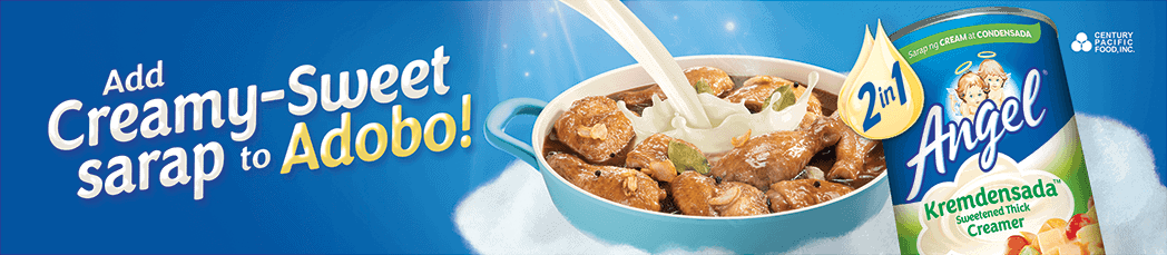 Create creamy-sweet dishes with Angel Kremdensada! It’s 2-in-1: combined goodness of Cream and Condensed Milk in one can! Tama ang tamis at tastier than cream! Sakto ang timpla kaya perfect for both for your ulam and desserts!