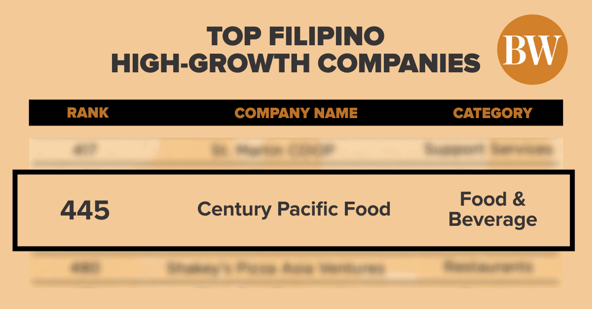 Century Pacific Food Inc. (CNPF) and its sister company, Shakey’s Pizza Asia Ventures Inc. (PIZZA), made the list along with 18 other Filipino companies.