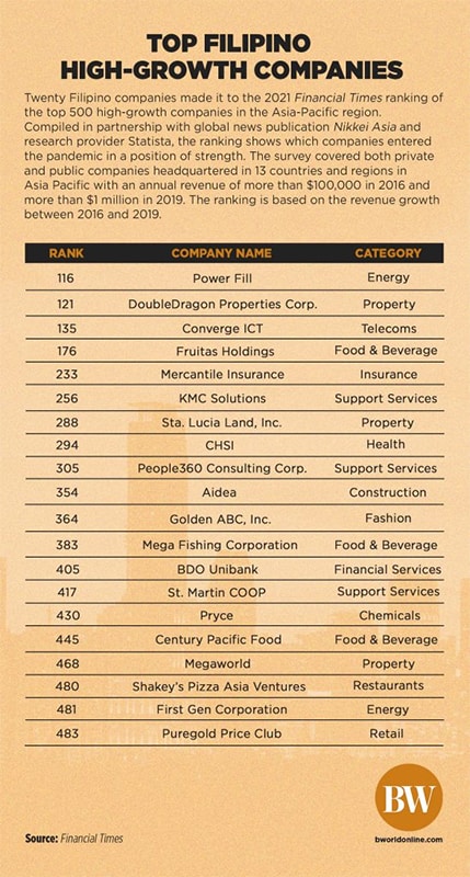 BusinessWorld online published a feature on Financial Times’ 2021 Top 500 High-Growth Companies in Asia Pacific.