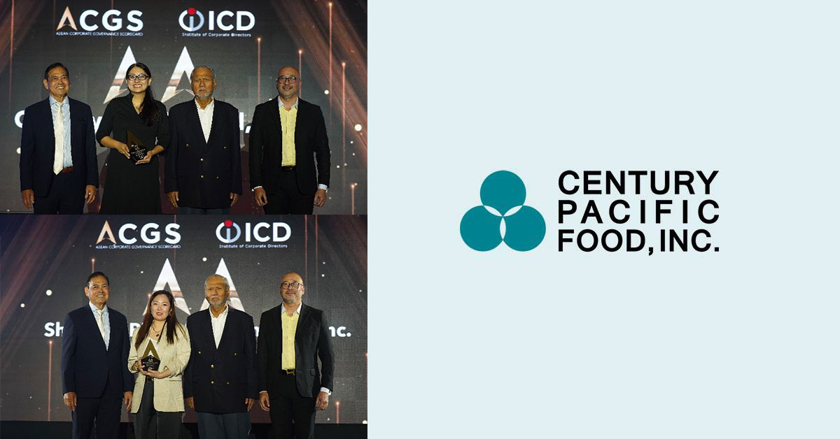Century Pacific Food Inc., (PSE:CNPF), one of the Philippines’ leading food and beverage companies, and Shakey’s Pizza Asia Ventures Inc. (PSE:PIZZA|SPAVI), the country’s leading full-service chain restaurant and food service group, were recently awarded by the Institute of Corporate Directors (ICD) at the ASEAN Corporate Governance Scorecard (ACGS) Golden Arrow Awards Night. Both companies, which are part of the Century Pacific Group, were honored for their commitment to upholding exemplary corporate governance standards and practices among publicly listed companies in the Philippines.