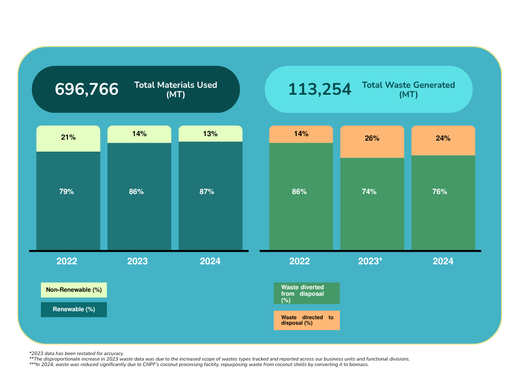*CNPF improved waste data collection, increasing the scope of business units and waste types tracked, resulting in an increase in the total waste generated reported for the year. The was primarily driven by reporting more general landfilled waste, packaging waste, and food waste from our operations that are processed into fishmeal and other by-products.