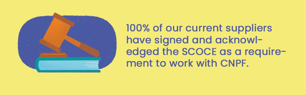 In early 2021, we formalized and institutionalized the Supplier Code of Conduct and Ethics covering actions of all raw material suppliers and service providers. It covers the following issues: (a) Human Rights (child labor, forced labor, and human trafficking, non-discrimination, harassment, working hours, wages and benefits), (b) Ethics (business integrity, no gift policy, fair competition, privacy, and intellectual property, conflict of interest ), (c) Health, Safety and Quality, (d) Environment, and (e) Management Systems.